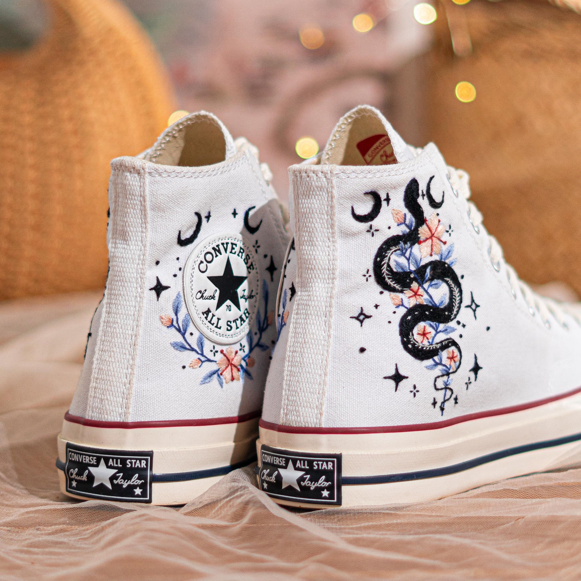 Custom Embroidered Converse Chuck 70 High Tops | Mystical Snake Design | Handmade Fashion Sneakers Gift