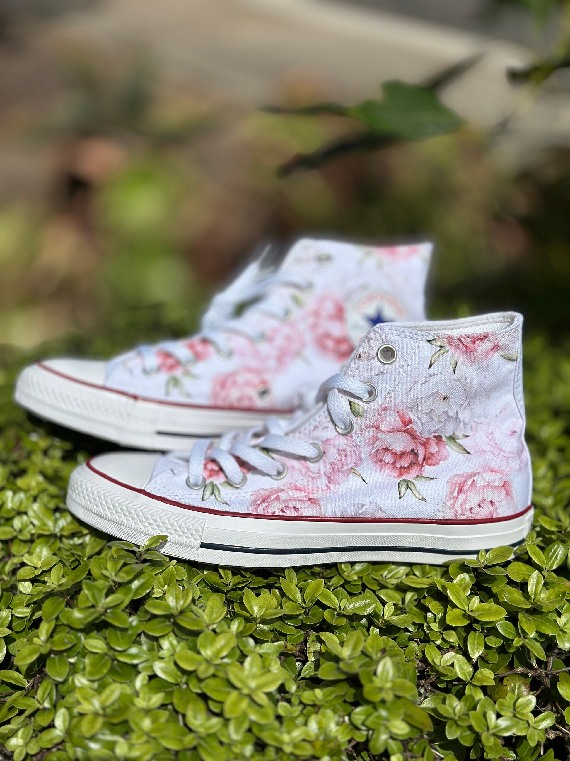 Floral Embroidered White High Top Converse | Custom Flower Pattern Sneakers
