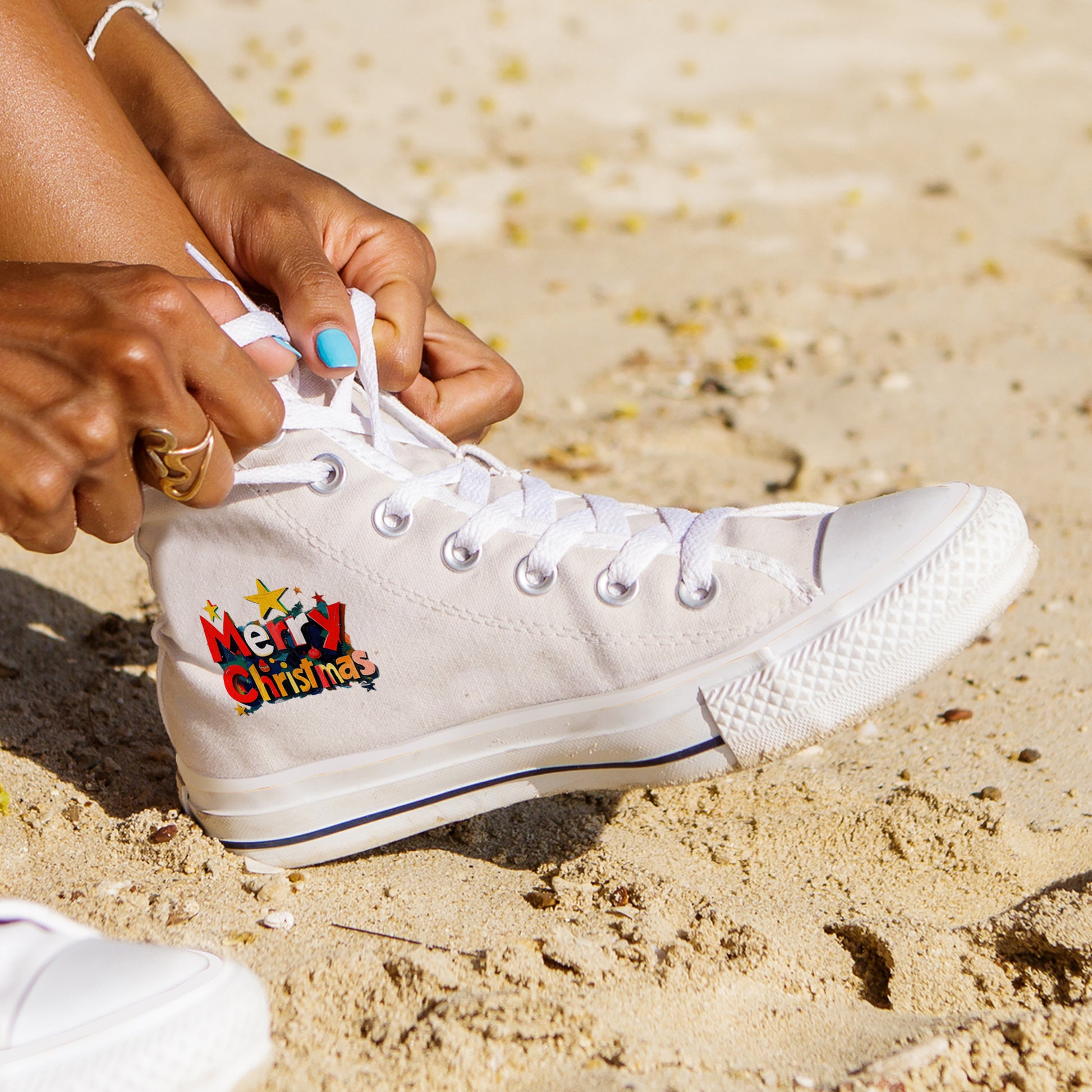 Funny "We Whiskey You A Merry Christmas" High Top Canvas Shoes | Adult Holiday Pun Sneakers