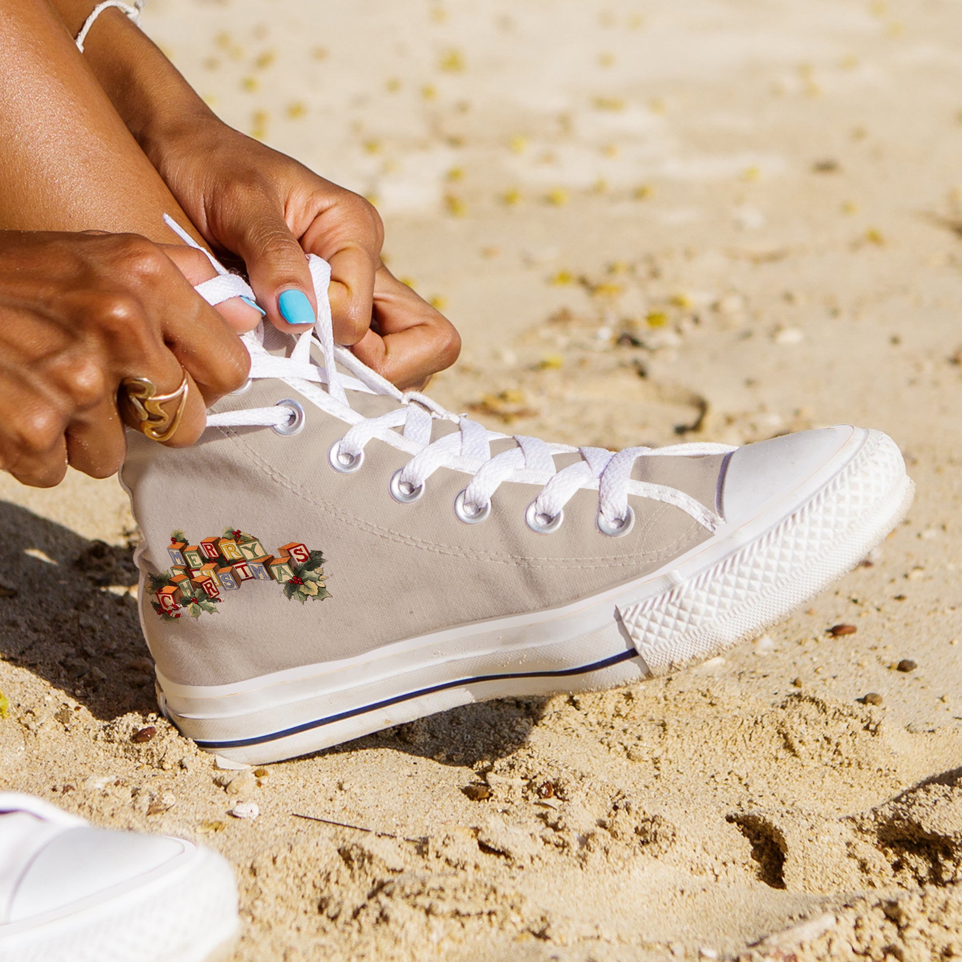 Every cat owner knows the true meaning of holiday chaos! Our Mischievous Feline High Tops perfectly capture the classic scene of curious kittens and an endangered Christmas tree.